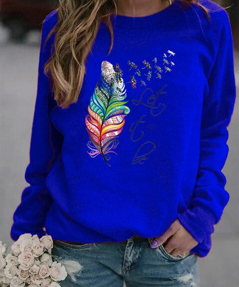 Komfortabler Damen Pullover mit Feder Motiv